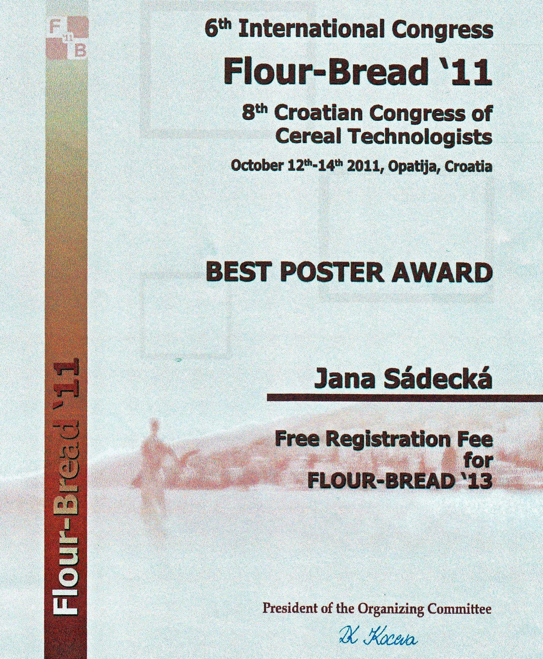 - Ing. Jana Sádecká, PhD. (awarded poster presentation at FLOUR-BREAD, Opatija, Croatia, 2011)